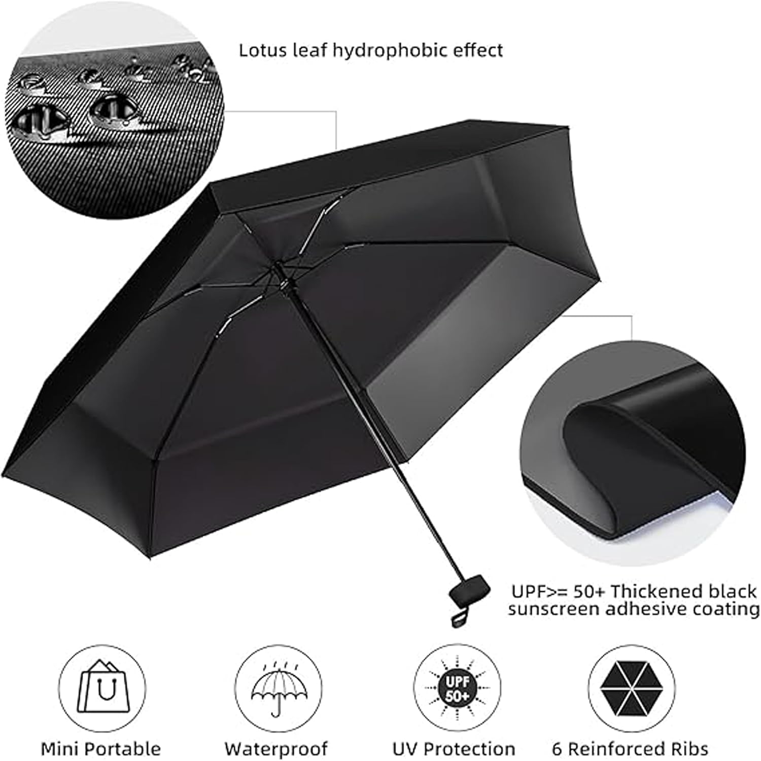 UV Travel Mini Folding Ultra Compact pastel Umbrella with Case, Manual Open 6 Ribs Lightweight Portable, Small Sun & Rain Pocket Umbrella for Men and Women- Use in Rain & Summer