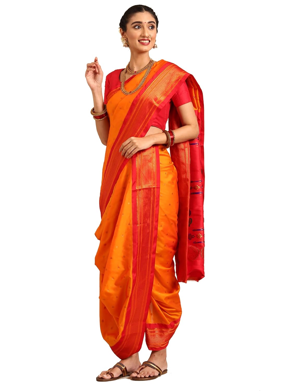 VARKALA- Women’s Kadiyal Soft Silk Nauwari ! Paithani Saree With Blouse Piece