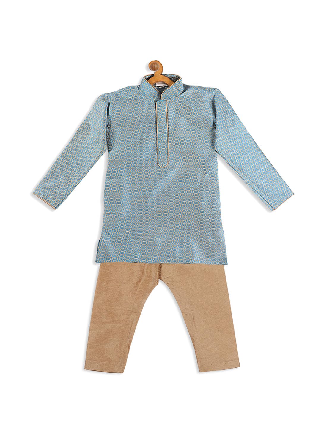 Generic Name : Vastramay Infant Boys Azure and Rose Gold Silk Blend Kurta Pyjama Set