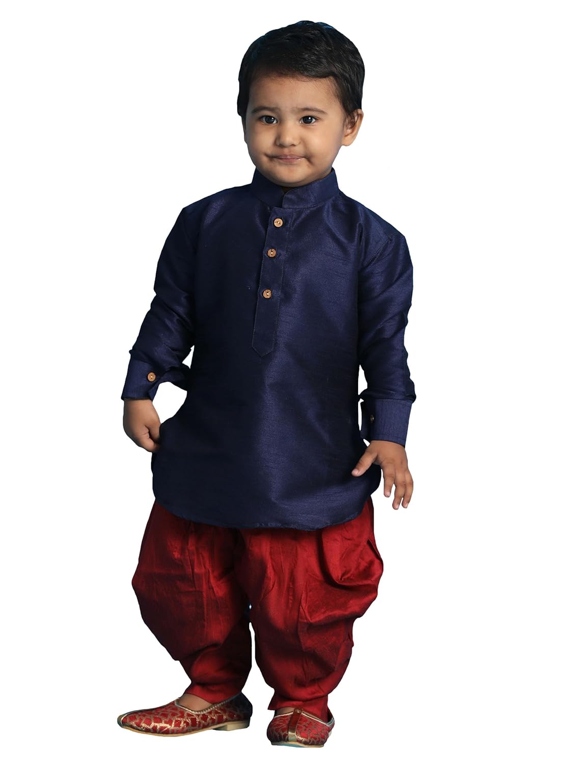 VASTRAMAY Infant Boys Navy Blue and Maroon Silk Blend Kurta and Dhoti Set_VSHISBUK001BUnCDMA_20