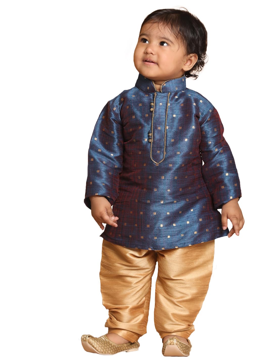Generic Name ‏ : ‎ Vastramay Infant Boys Persian Blue and Rose Gold Silk Blend Kurta Pyjama Set