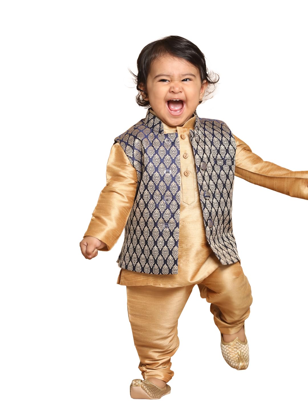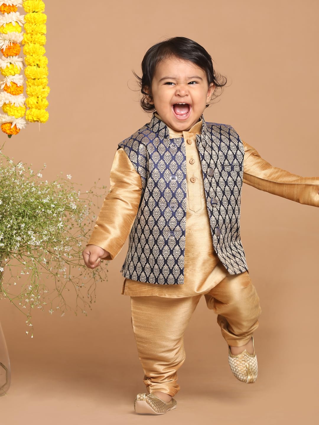 Vastramay Infant Boy’s Silk Blend Jacket, Kurta and Pyjama Set
