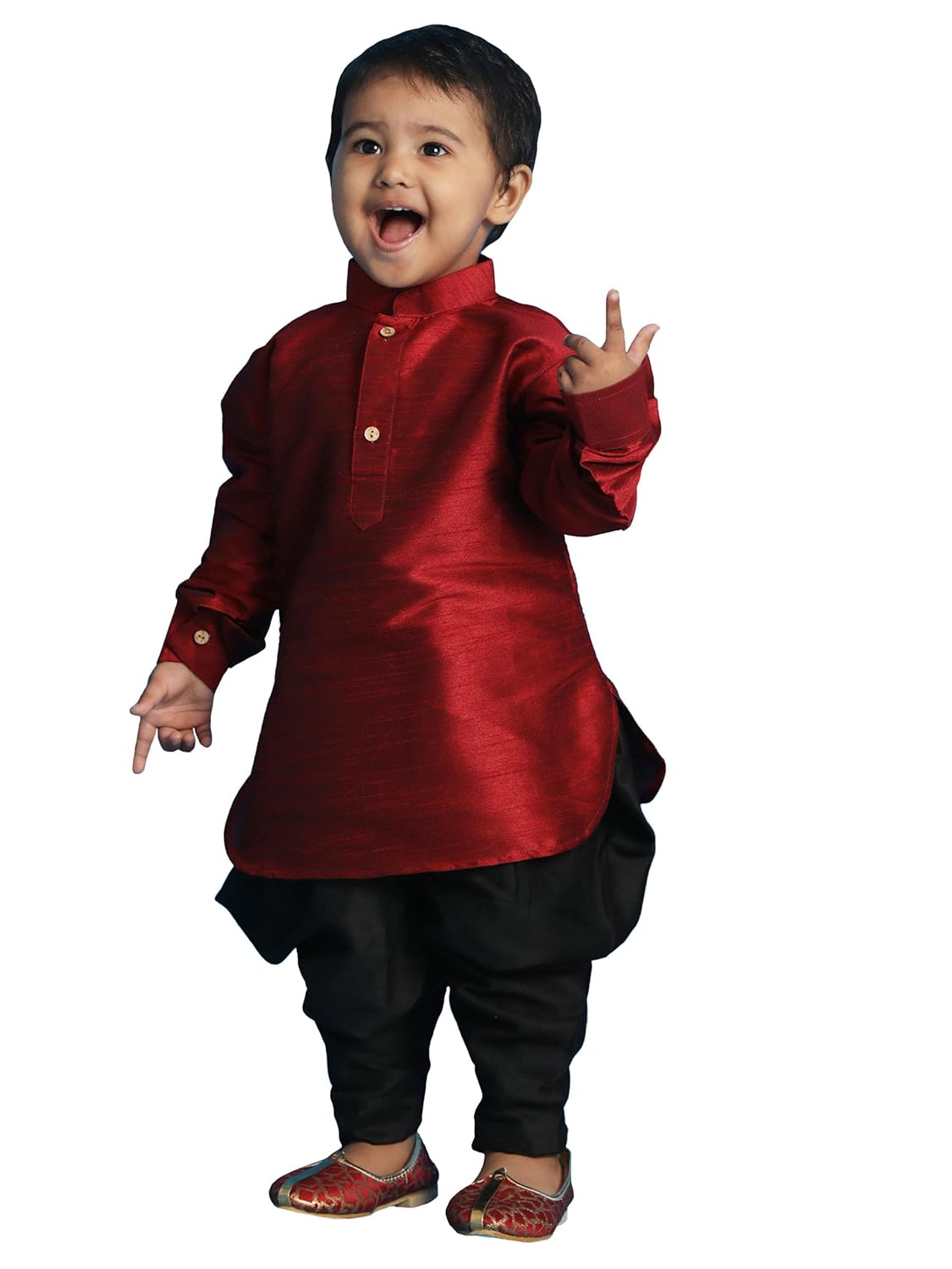 Get your little boy these kurta dhoti for boys and jacket for boys stylish stitched meticulously to fit all body type. This ethnic wear for kids boys fabric has been designed keeping in mind the latest trends in a casual fashion or occasional fashion. Engineering garments which fit all body types and style is our aim. These pyjama kurta for boys party wear or regular wear are made with superior quality very soft fabric and comfortable wear. These are multi utility sets, the Nehru Jackets for boys latest Modi Jackets for kids can be used separately as a Bandi or for a formal event, or a school cultural fancy dress program. These jackets are best safer alternatives to winter coats or blazers, as it covers the chest area of the child. These are perfect light weight easy to wear alternative to a servani or sherwani for kids boy. Our recommendation next time don’t go for a kids sherwani for boy stylish latest design or indo-western for kids, try these! Paired it with a nice shirt on a jeans to flaunt a charming killer dapper boy! To complete the look adorn a mojari or jutti slippers for kids stylish, you may also try an authentic Kohlapuri chappal for boys, the fashionistas and millennial folks may experiment with a brogues or oxfords juta for boys stylish. Suitable for: Party, Weddings, Regular Wear, Celebrations, Occasions, Festivals, Lohri, Pongal, Makar Sakranti, Baisakhi, Saraswati Puja, Holi, Ugadi, Jamai Sasthi, Eid, Raksha Bandhan, Dussehra, Diwali, Navratri, Pooja, Christmas, Onam, Ganesh Chaturthi, Janmashtami and Gifts for Kids.