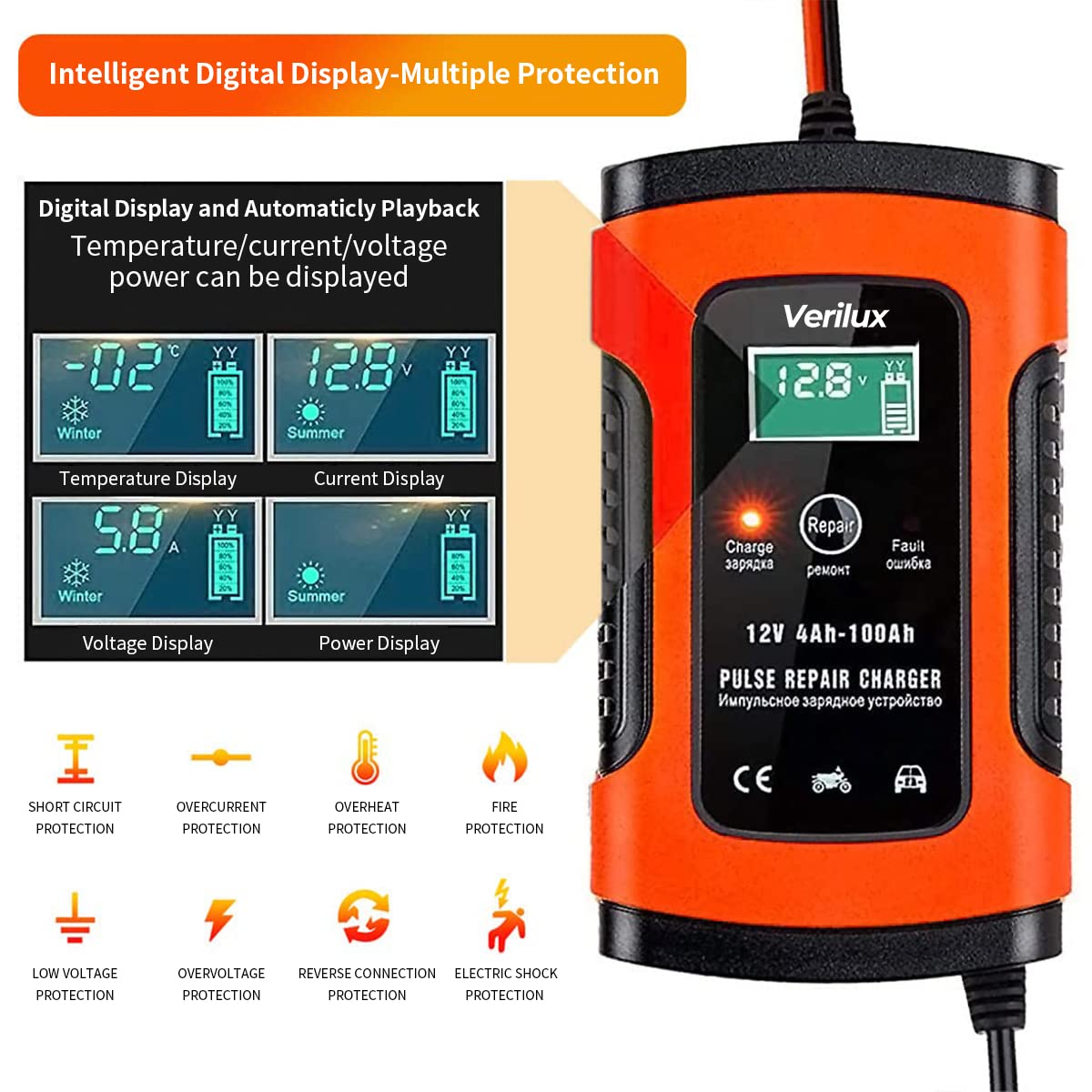 8 reviews for Verilux® Fully Automatic Battery Charger 5A 12V, Car Battery Charger & Maintainer- EU Plugfor Car, Motorcycle, Lawn Mower and More(Red)