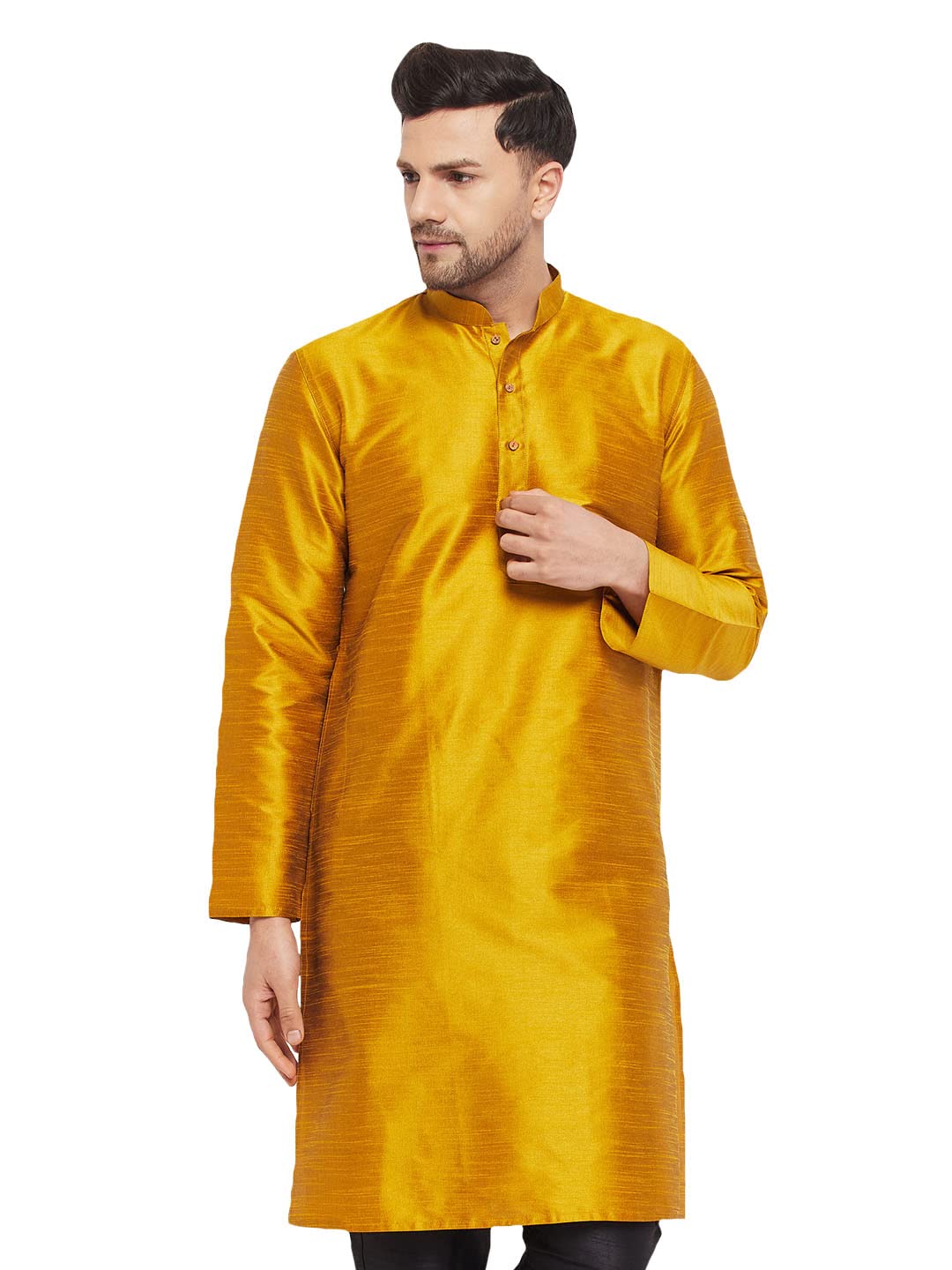Be the first to review “VM Men by Vastramay Men’s Gold Silk Blend Kurta” Cancel reply