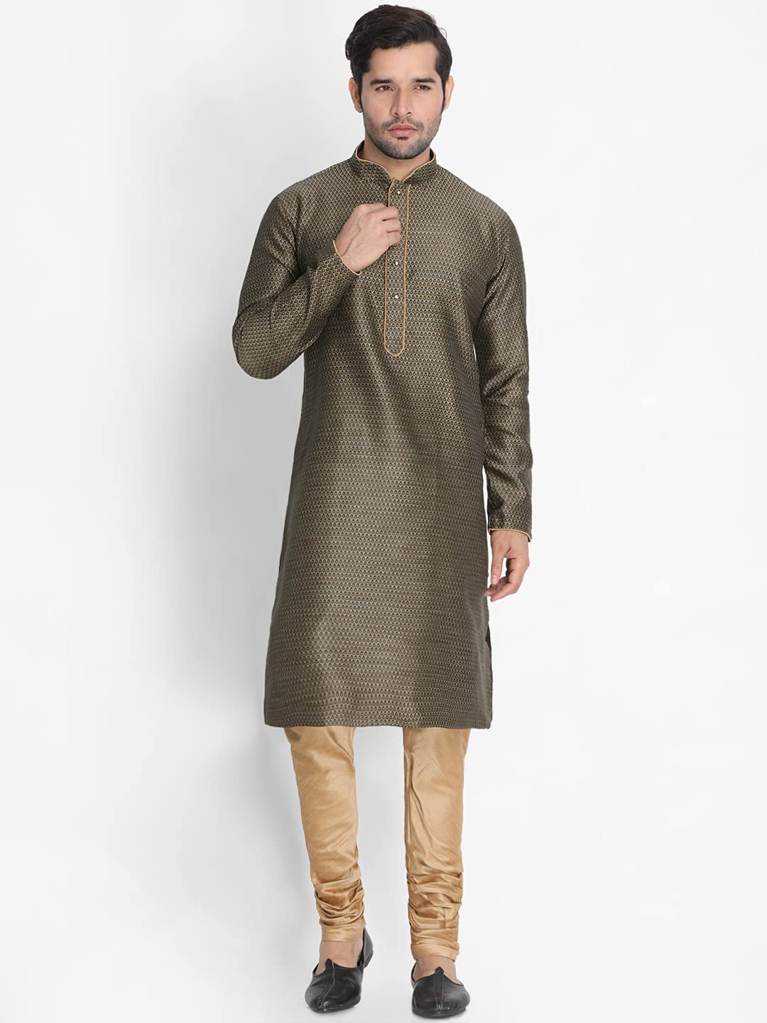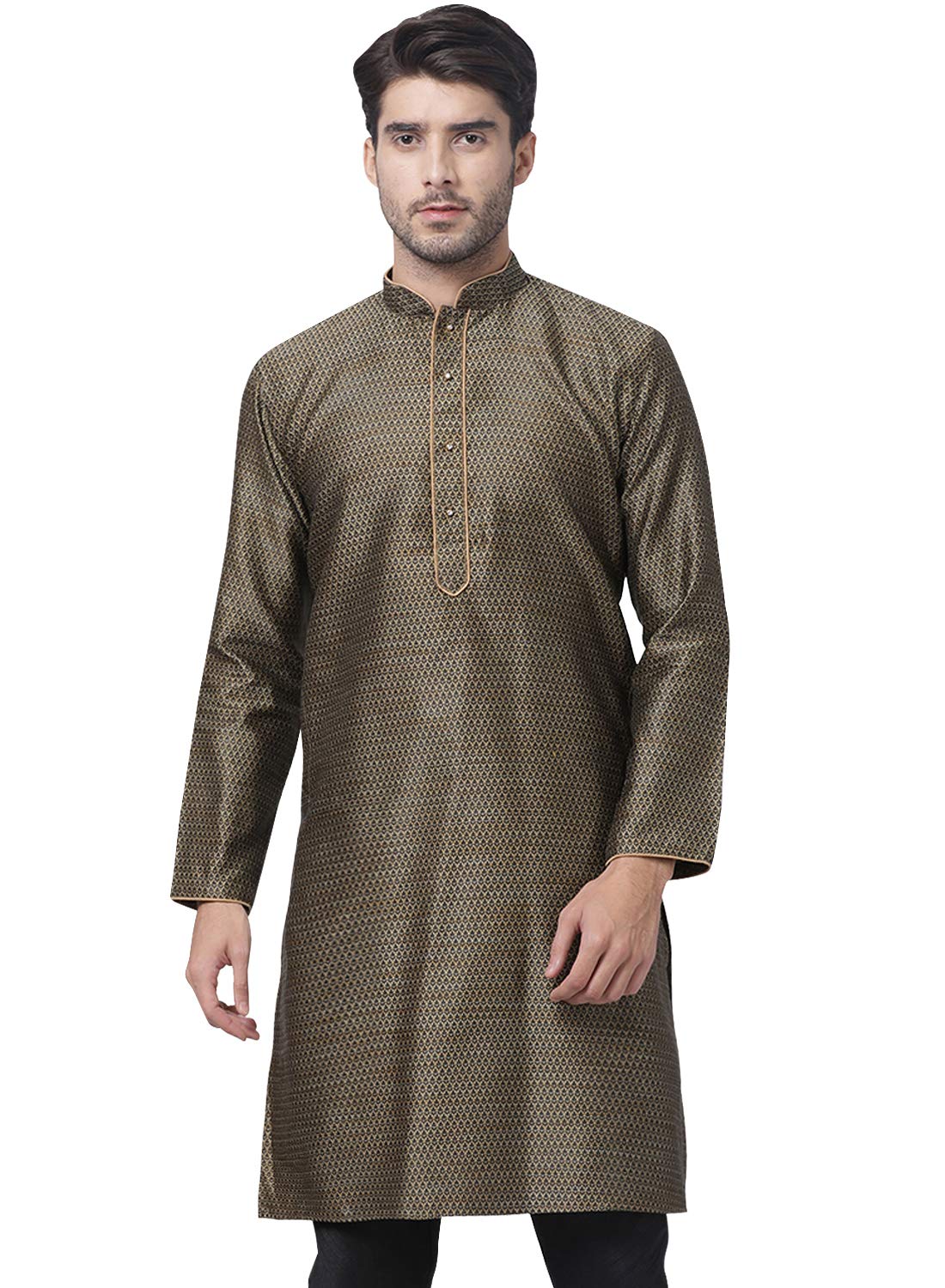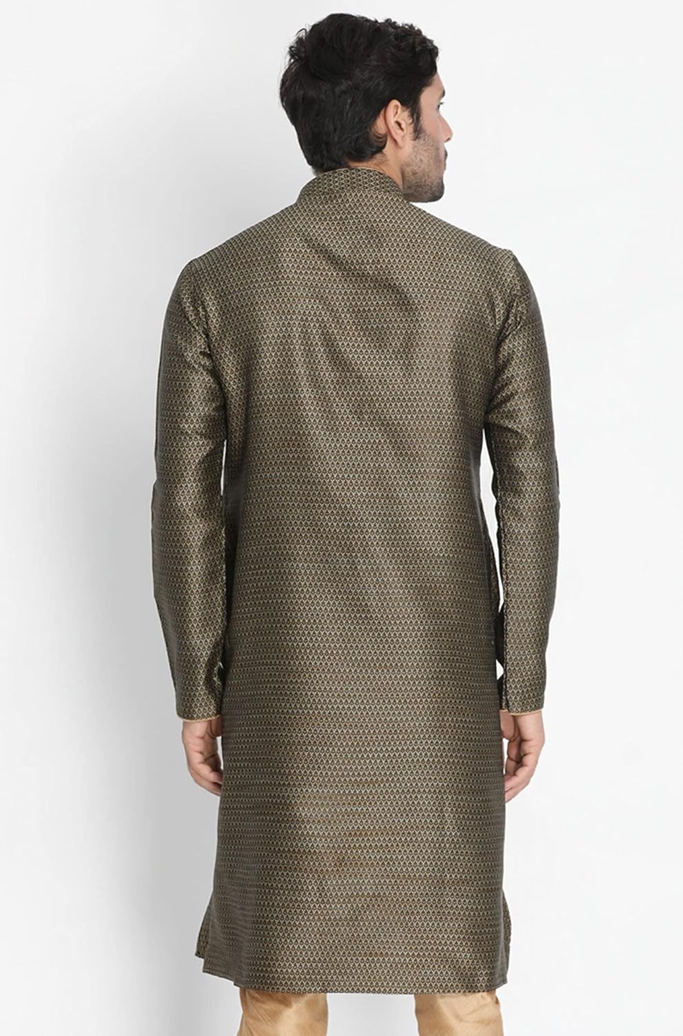 VM Mens Silk Blend Kurta – Timeless Elegance for Festivals & Events | Banarasi Cotton with Silk Dobby Jacquard Mandarin Collar Full Sleeves Kurta with a Contrast Piping