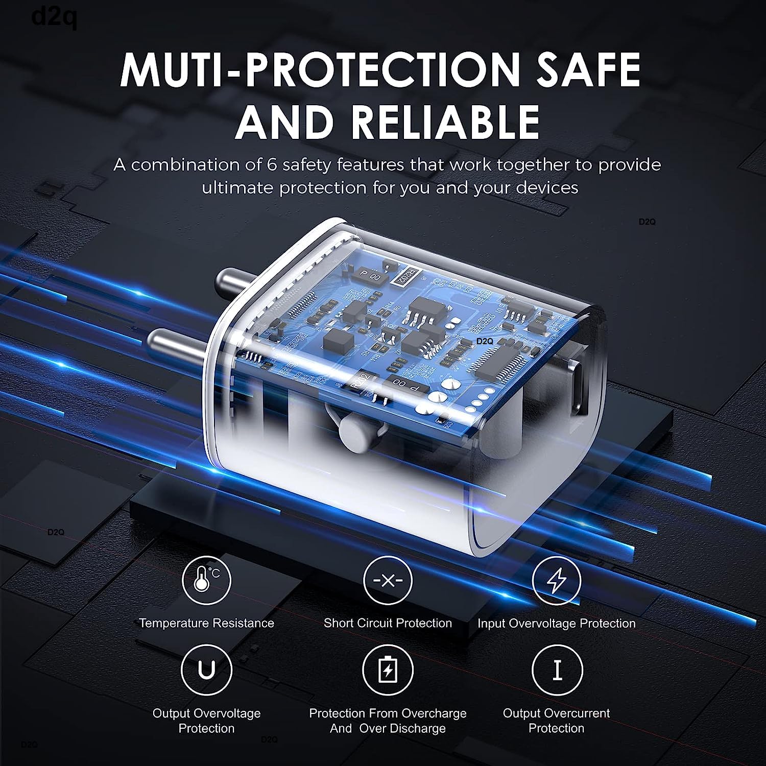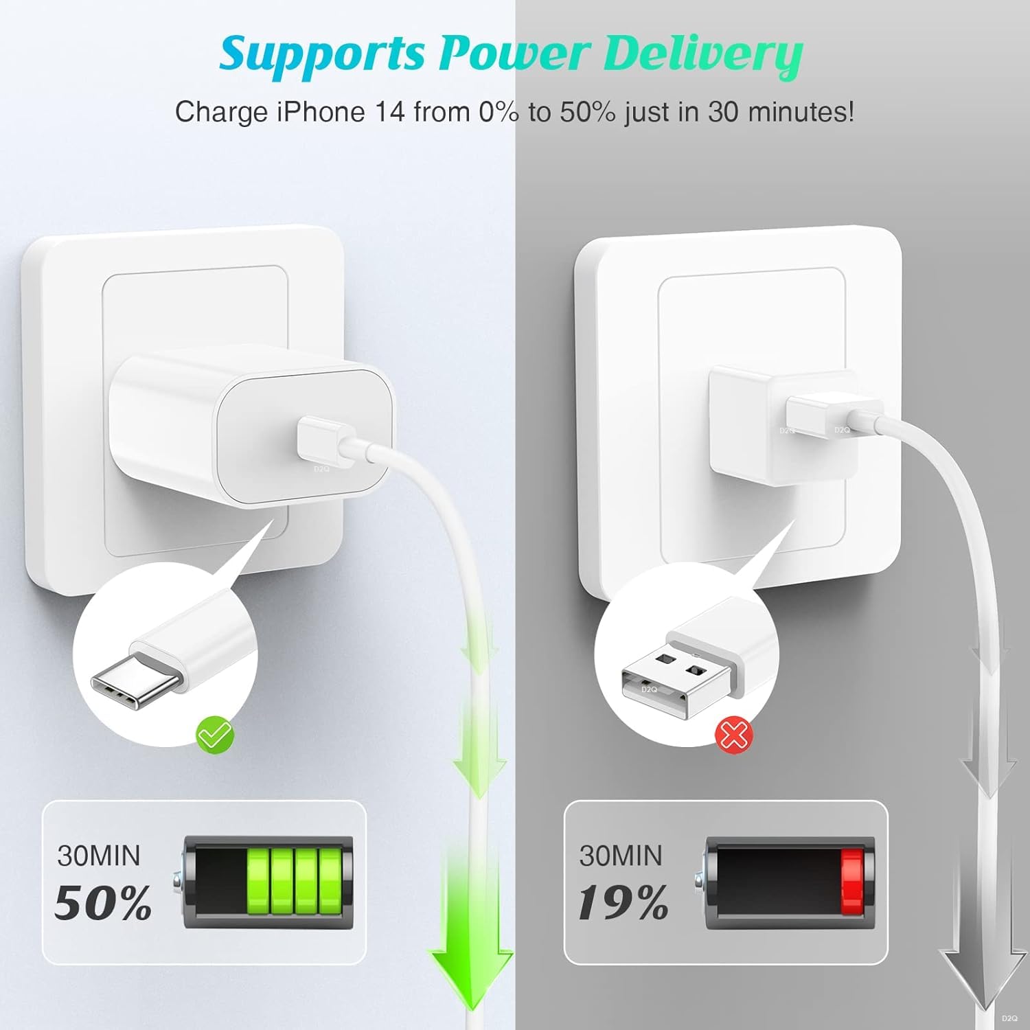 20W Fast Cable: Fast Charger equipped with 20W PD 3.0 USB Type C power delivery wall plug, PD 3.0 Quick-Charge USB C provides Max 20W output power, charge your device up to 3x.