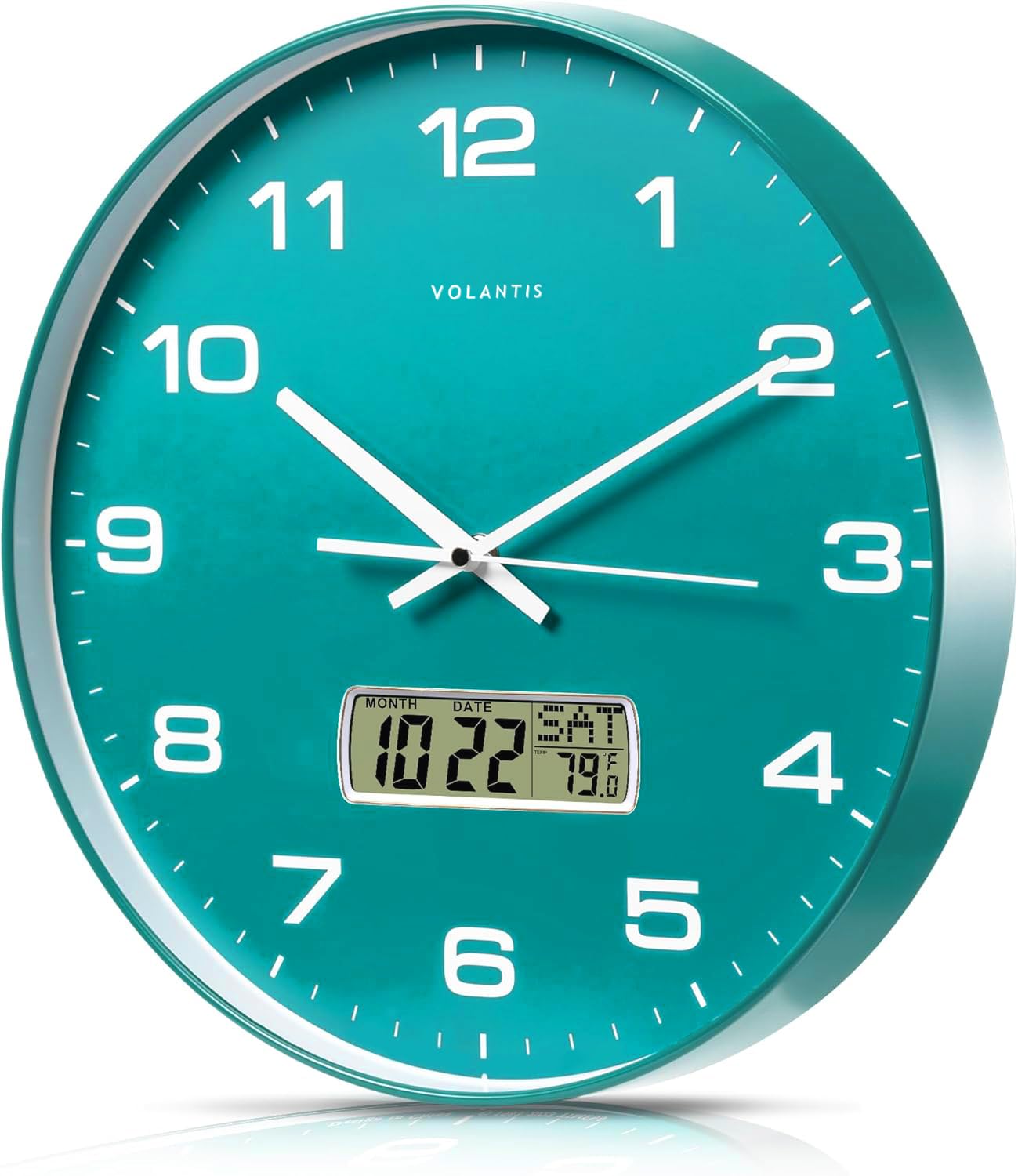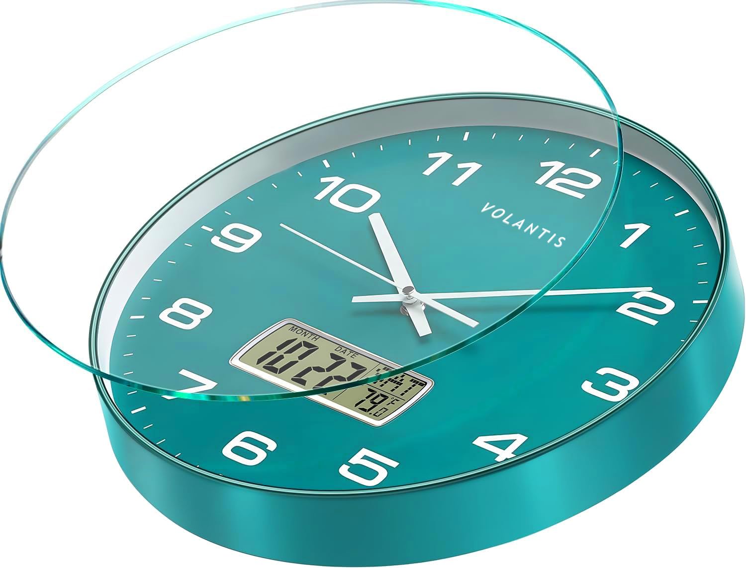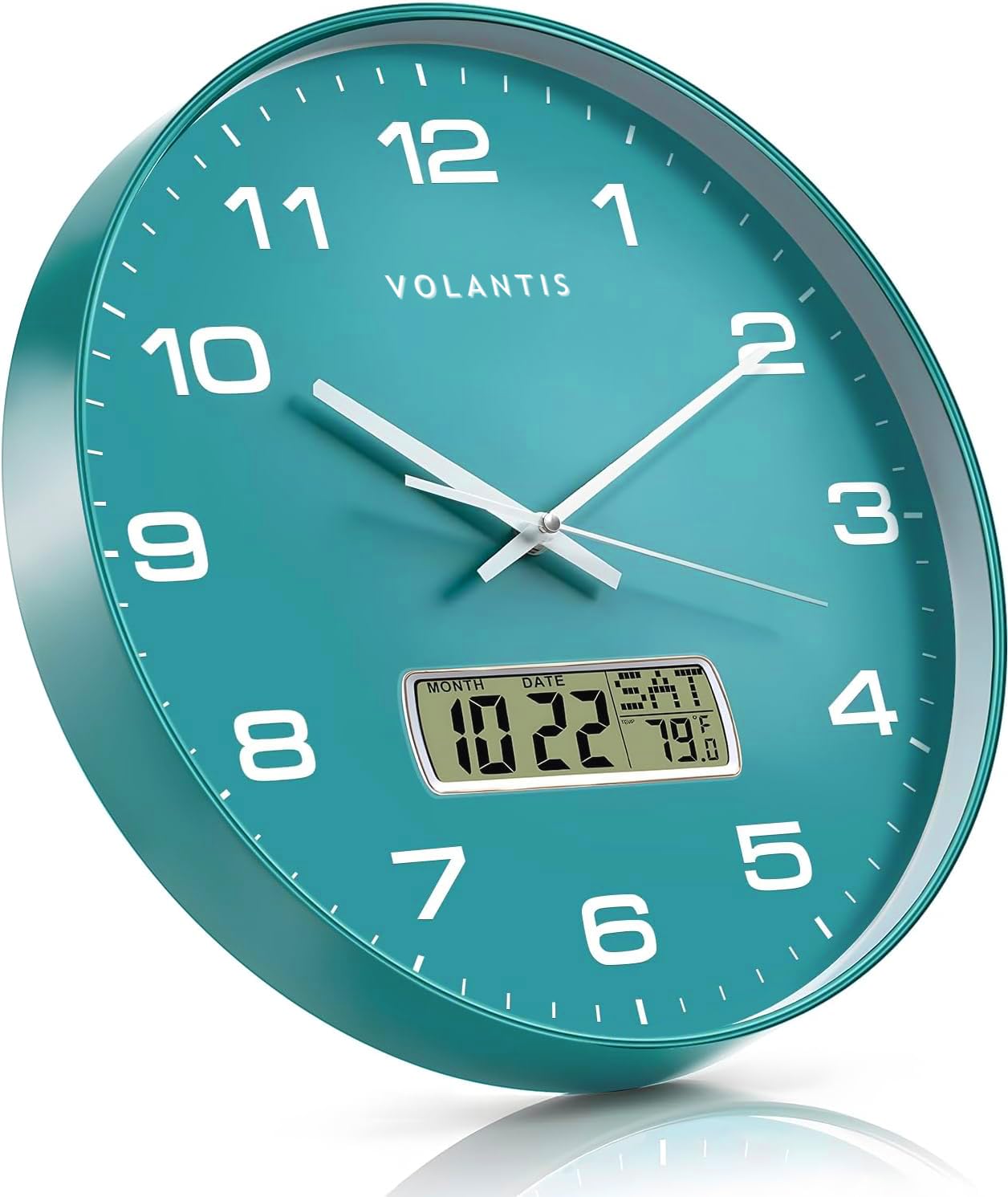 This wall clock is simple and useful. It doesnβt make any ticking noise, so itβs good for quiet rooms. The display shows the date and temperature clearly. The green color looks nice and the clock feels strong. Overall, itβs easy to use and works well.