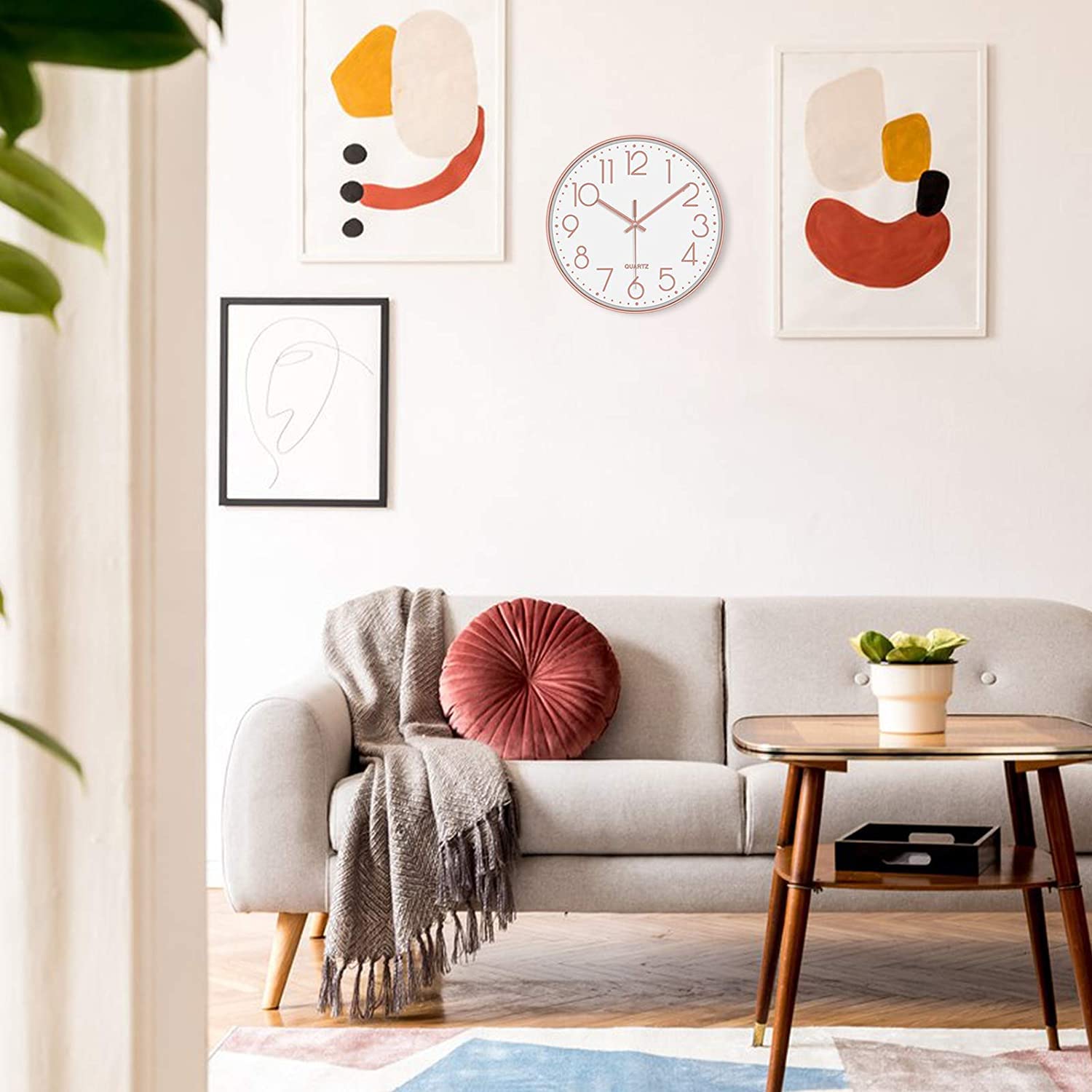 This wall clock has a stylish black dial with rose-gold numbers give it a premium look. It is easy to read, works quietly, and suits any room decor. A perfect blend of beauty and functionality. Clock hand are silent while moving so you will not get disturb by noice of tickling sound. Good material used in clock.