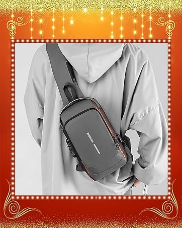 Really impressed with this sling bag! The material feels premium and water-resistant, and the sleek gre and bronze look stands out without being flashy. The zippers are smooth, and the built-in lock adds a nice touch of security. It’s compact yet spacious enough for essentials and very comfortable to wear. Perfect for daily use or travel and its stylish, sturdy, and worth every penny!