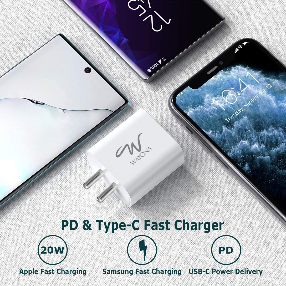 Wayona 20W USB C PD/QC Fast Charging Adapter Compatible for iPhone 17,16,15,14,13,12,11Pro Pro Max Samsung Galaxy S25 Ultra,S24, S10, Flip FoldGoogle Pixel 6, 5, 4, 3, 2, (20W,USB C Charger)