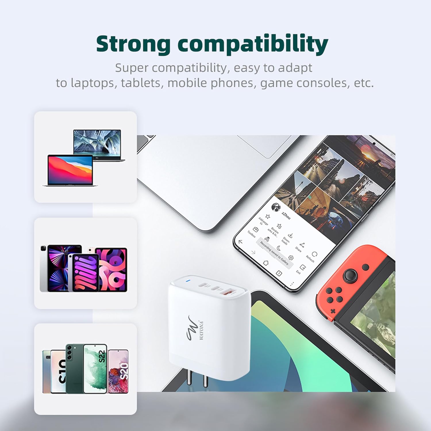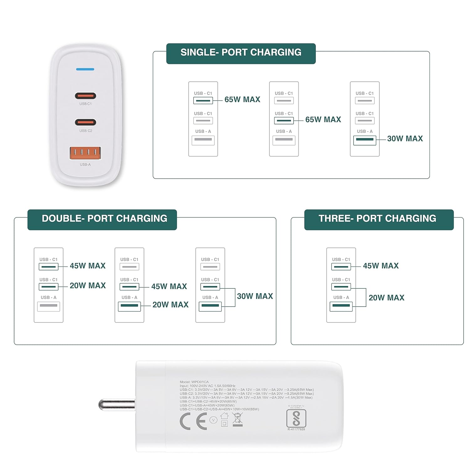 Since I need to travel a lot, carrying around the conventional HP charger was a hassle. My HP ENVY laptop supports type C charging hence i wanted to get a GaN charger which would charge my samsung phone and hp laptop alike. Brilliantly does the job, comes with a long and sturdy cable, small & compact size. However I’d be scared to drop it because it’s sort of heavy for it’s size and i wouldn’t be surprised if that cracked the plastic casing open. Apart from that, amazing product and also the one of the cheapest GaN charger out there. Heats a little while charging laptop at 65W but I’m least bothered about it. Once you plug in more than 1 device the wattage will get divided and charging speed will drop a little.⚠️IMPORTANT UPDATE⚠️: My Laptop’s motherboard got cooked after 3.5 months of using this, and the HP technician claimed it was because of this charger since it lacks an earthing pin, and the repair cost would be hefty (~80k INR) if my device was still not under warranty. It is important for laptop chargers to have a physical earthing pin, and thus the company chargers come with it. Don’t charge your type-c windows laptop with this. Get the authentic type C charger from your laptop’s manufacturer. Idk about MacBook though.