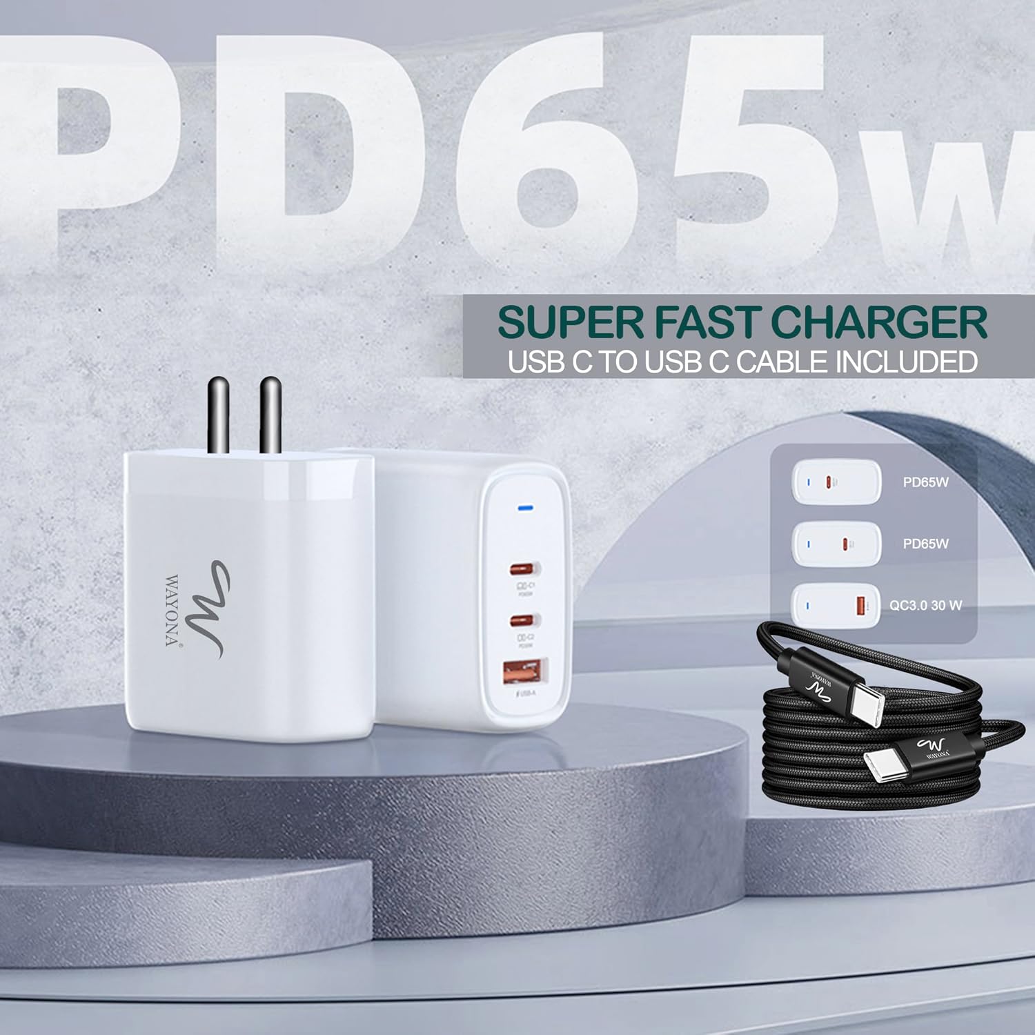 I was looking for a fast charger for my Samsung mobile (a pity, they don’t pack a charger nowadays). I initially thought of going for the original Samsung charger but then decided to go for a GAN charger with multiple ports.I have used GAN chargers before, and so did some research on what is currently available in the market. The market is flooded with GAN chargers as every company seems to be making them. The only difference I assume is the quality of the components they use inside the chargers. The cheap ones tend to get super hot very quickly and don’t last long.My initial choices were those from Belkin, Anker (and maybe Spigen), as those are guaranteed to perform better and last longer than the cheaper ones. But I could not justify the cost. At last, I decided to take a chance and went for this one from Wayona.So far it is working fine. Both the Type C ports are capable of supplying 65W when used independently. S23 takes 1hr 20 min to charge from 0%-100%. With around 10% charge left, it takes around 1hr 10 mins to charge fully.Does it get hot? Yes, it does. It gets hot enough to be uncomfortable in hand when it is charging from both ports at full speed. But it is the same with other GAN chargers. I have seen Belkin and Spigen getting uncomfortably hot too. It does cool down quickly when not being used, just like any other GAN charger.The built quality looks good, at least from the outside. Not sure how the internals are, only time will tell.It’s good that it comes with a fairly long type C- C braided cable. I have tested charging the phone both with the original cable that came along with the phone and the one supplied by Wayona. Both take the same time to charge the phone.The only minor issue I have encountered is that the charger may block the adjacent switch when plugged in. This of course depends on the design of your switch-board. Most GAN chargers of 65W or higher may have this issue as these are bigger than normal chargers.So far, I am satisfied with the speed and versatility (two Type C, one Type A port) and the looks of this GAN charger. If it also lasts long without any performance degradation, I will consider the money well spent.Wayona is an Indian company. I also have a short type C-C cable (to be used with powerbanks) from the same company. If they can keep offering good dependable products at reasonable prices, I will consider more products from this brand.