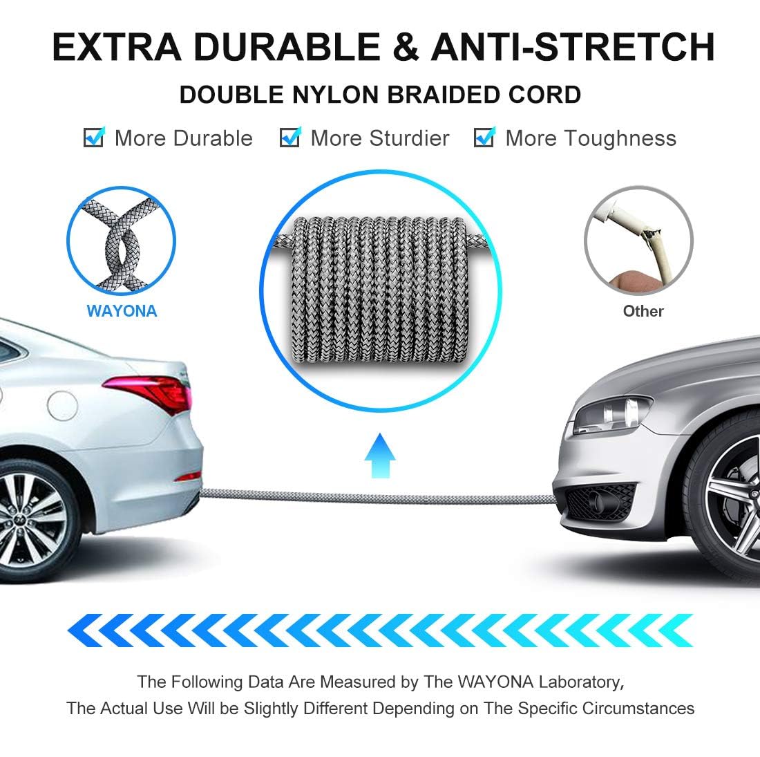 【Military grade material】: Strong military fiber, the most flexible, powerful and durable material, makes tensile force increased by 200%. Special Strain Relief design, can bear 10000+ bending test. Premium Aluminum housing makes the cable more durable