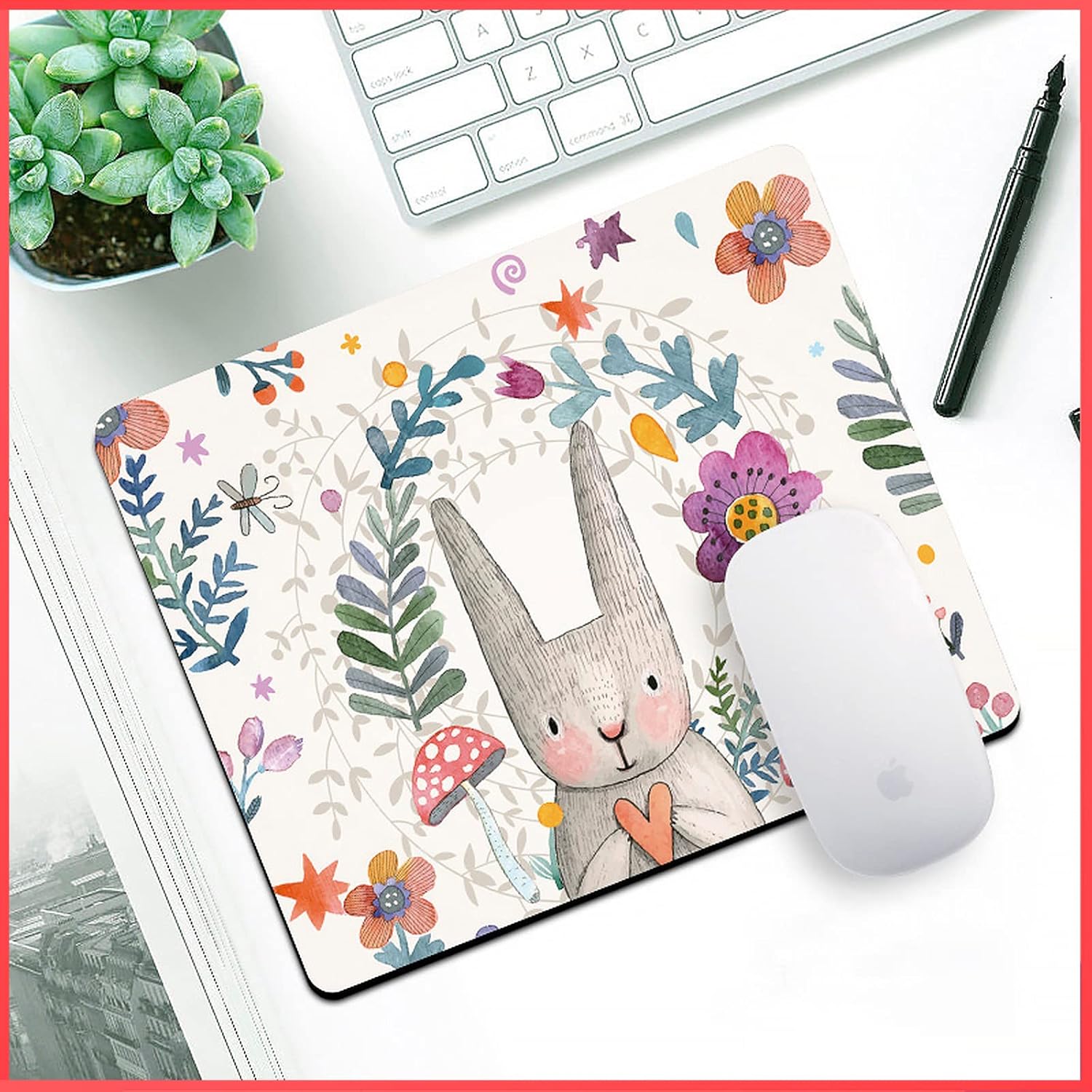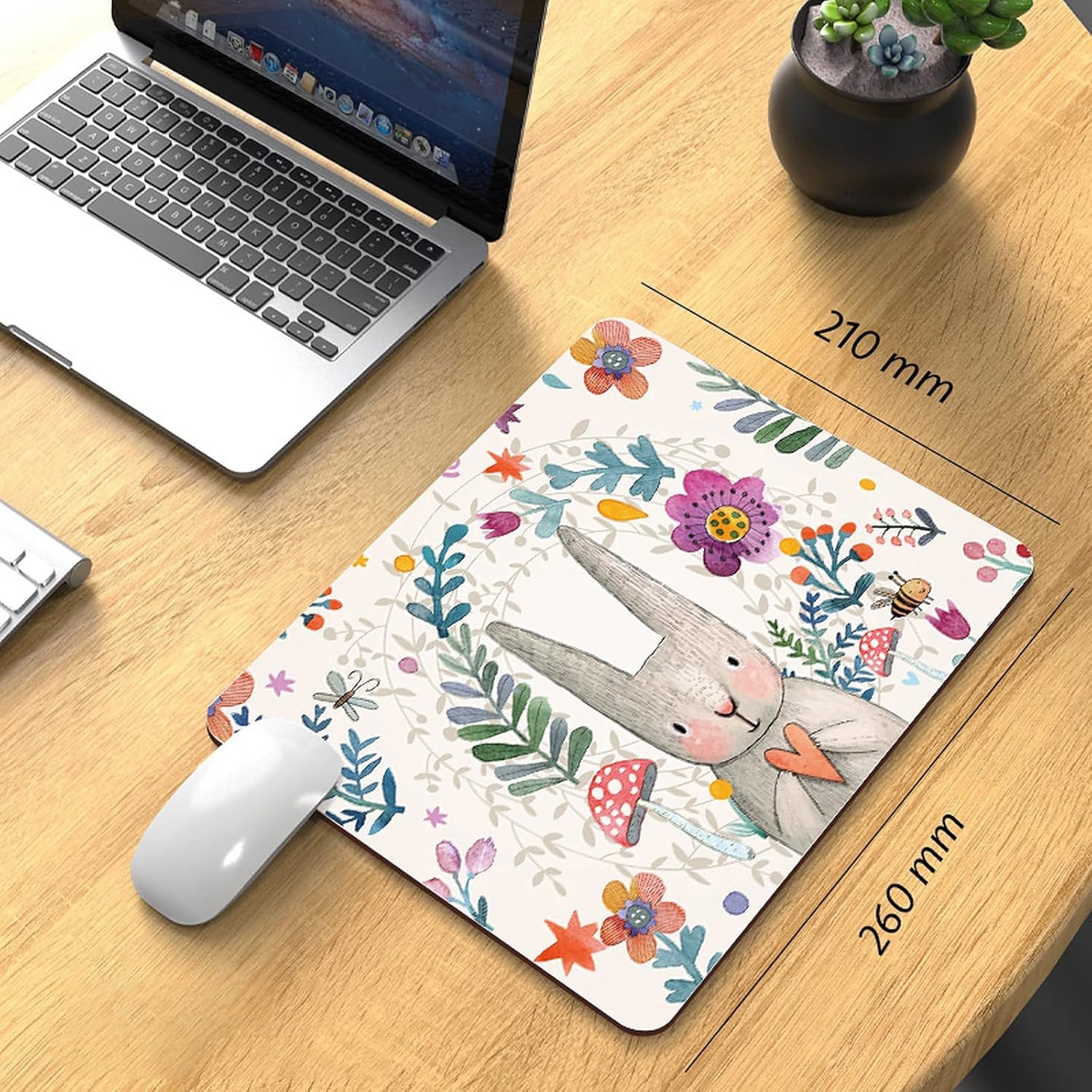wolpin Mouse Pad for Laptop PC, Notebook, MacBook Pro Air, Gaming Computer (26 x 21 cm), Anti-Slip Rubber Base Mousepad, Rabbit