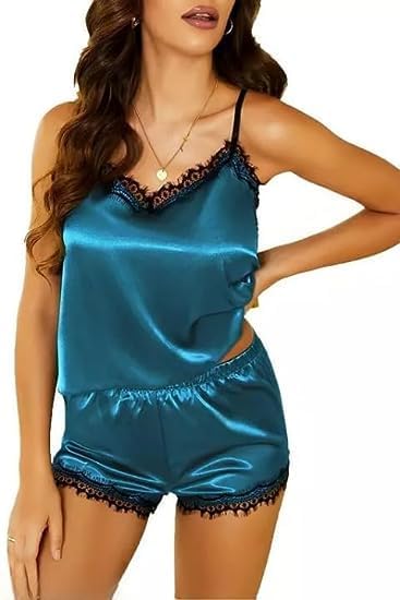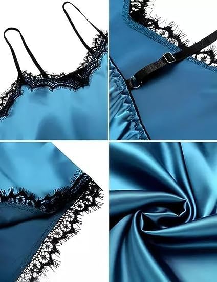 Be the first to review “Women Sexy Lingerie Satin Silk Sleepwear Lace Trim Nightwear Soft Pajamas Sets V Neck Camisole and Short Panty Aqua Blue” Cancel reply