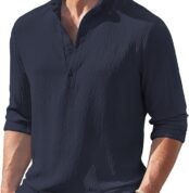 Men’s Regular Fit Solid Popcorn Full Sleeve Regular Fit Short Kurta | Solid Pattern Mandarin Collar Straight Kurta