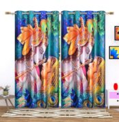DECOMIZER Polyresin 3D Digital Printed God Blue Mor Radhey Krishna Print Curtains for Home Polyester Knitting Door Curtain Multicolor for Pooja ghar mandir Home 4 x 5 Feet Window Curtains – 2 Pieces