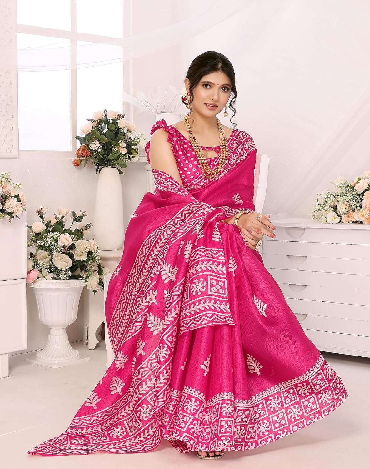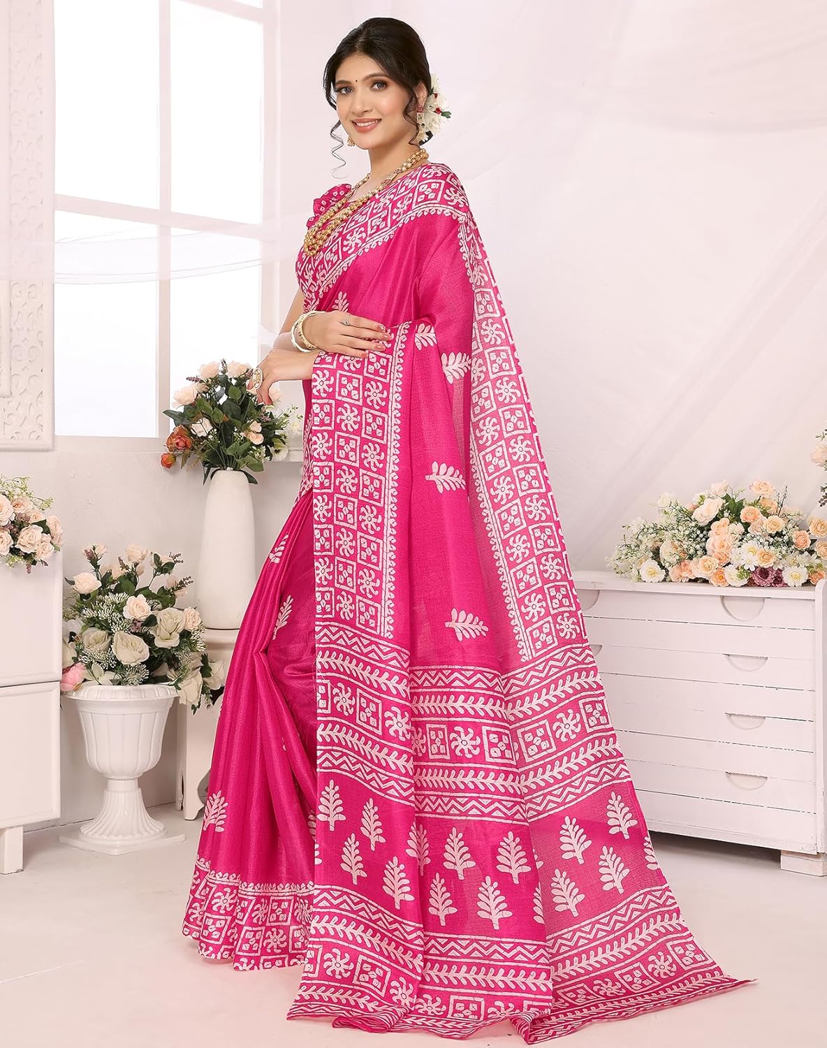 YASHIKA- Women’s Woven Printed Art Silk Saree ! With Unstitched Blouse Material ! Latest Cotton Party Saree