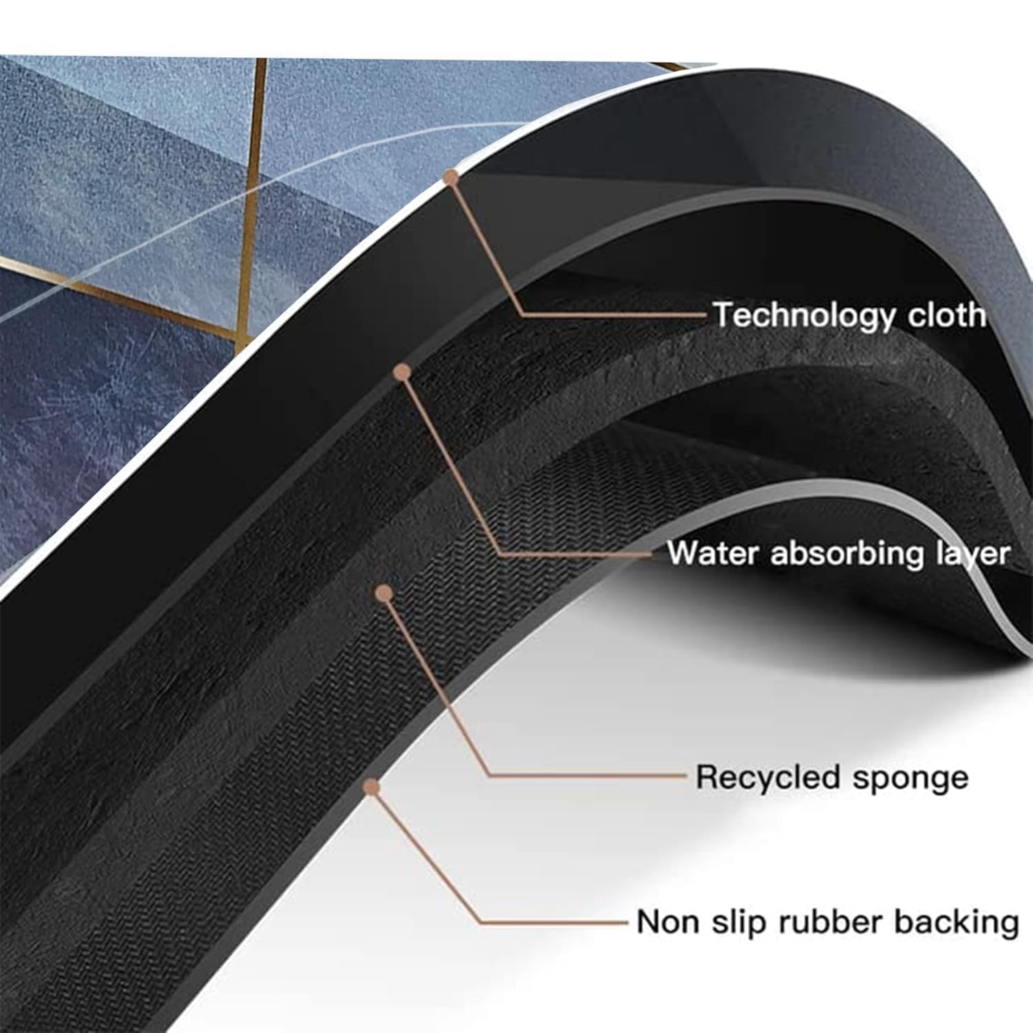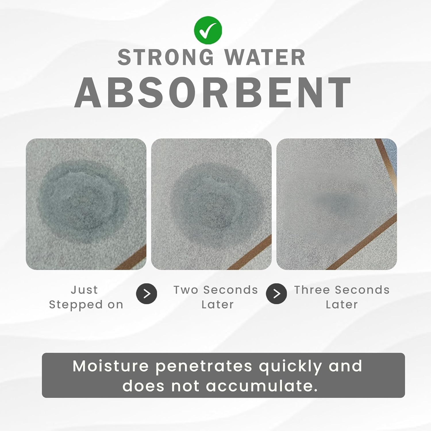 Very nice quality product, absorbs water well and anti slip. Very soft and easy for cleaning. Value for money paid.