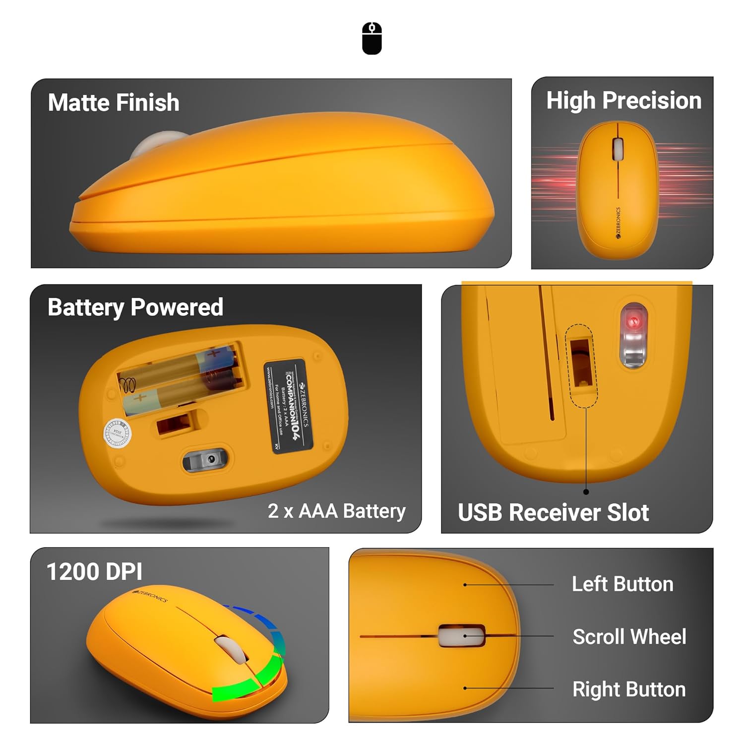 8 reviews for ZEBRONICS Companion 104 2.4GHz Wireless Keyboard & Mouse Combo, 100 Keys, Laser Printed Keycaps, Integrated Multimedia Keys, 3 Button Mouse, 1200 DPI, High Precision, Advanced Optical Sensor (Yellow)