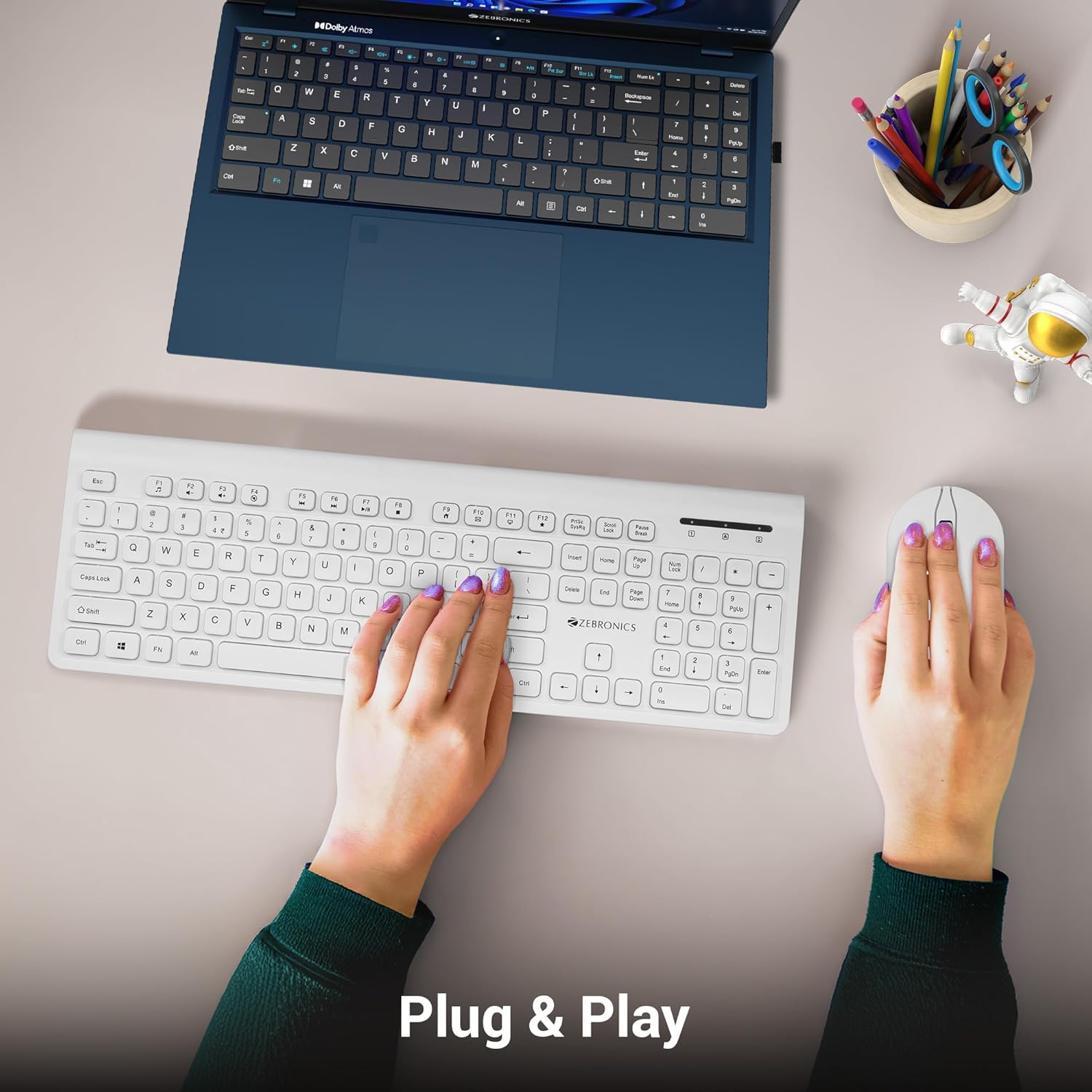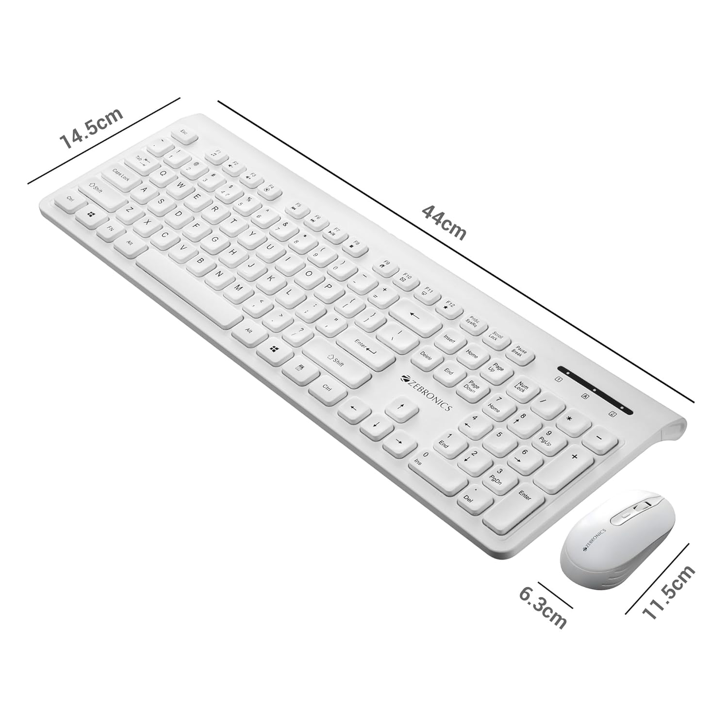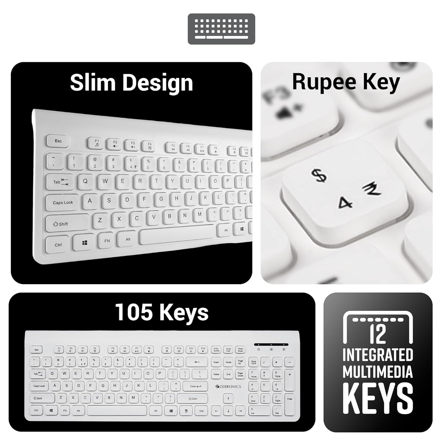 ZEBRONICS Companion 130 2.4GHz Wireless Keyboard & Mouse Combo, 105 Keys, 12 Integrated Multimedia Keys, 4 Button Mouse, Upto 1600 DPI, High Precision, Advanced Optical Sensor (White)