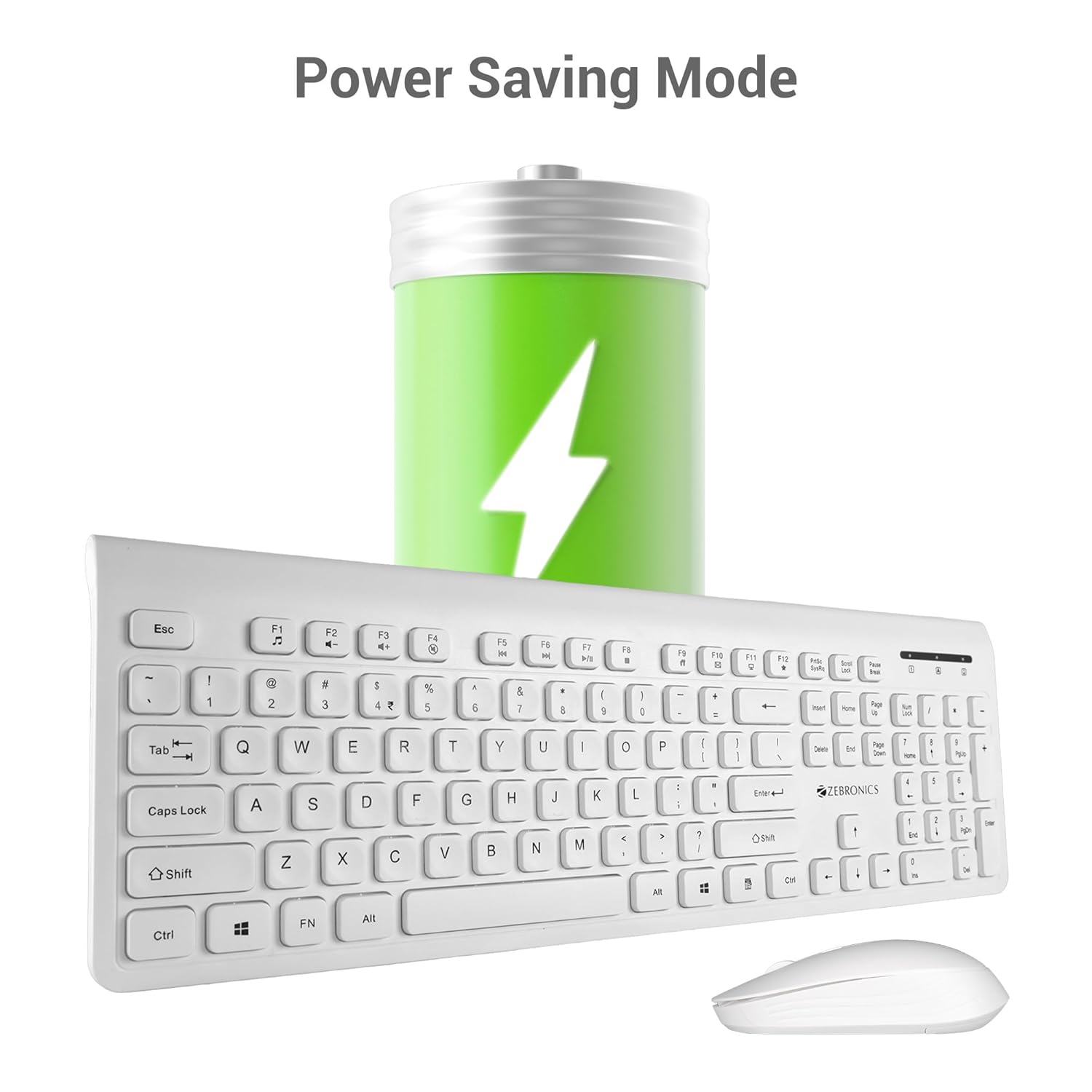 ZEBRONICS Zeb-Companion 500 2.4GHz Wireless Keyboard and Mouse Set, USB Nano Receiver, Chiclet Keys, Ultra Silent, Power On/Off Switch, Rupee Key, for PC/Mac/Laptop (White)