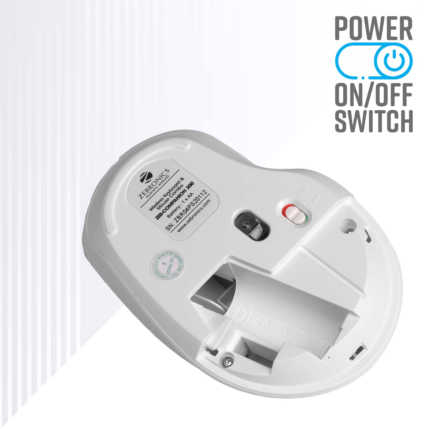 Zebronics Companion 200 Wireless Combo with Silent Operation Mouse, Full Size Keyboard, 1600 DPI, Integrated Multimedia, ON/Off, Power Saving Mode, 2.4GHz Nano Receiver and Plug Play Usage (White)