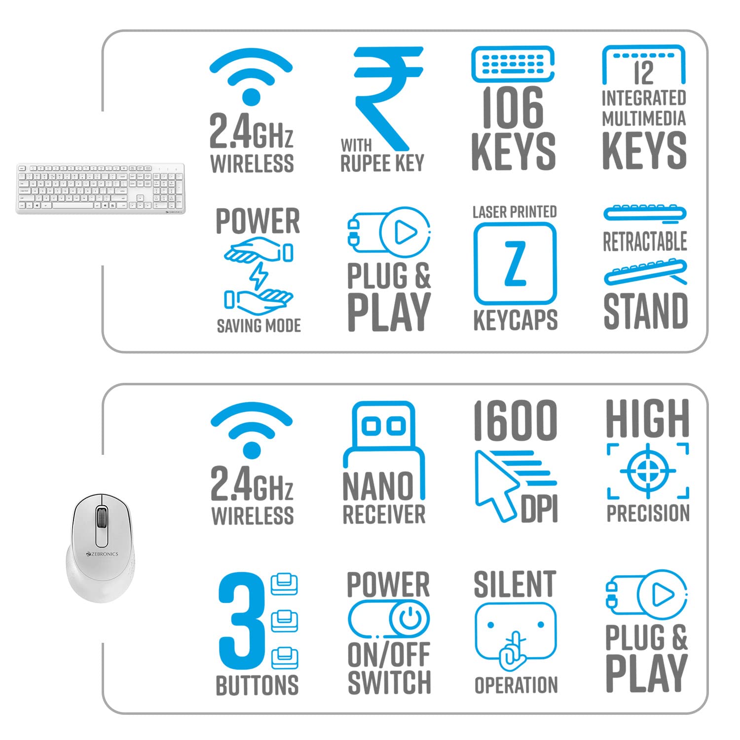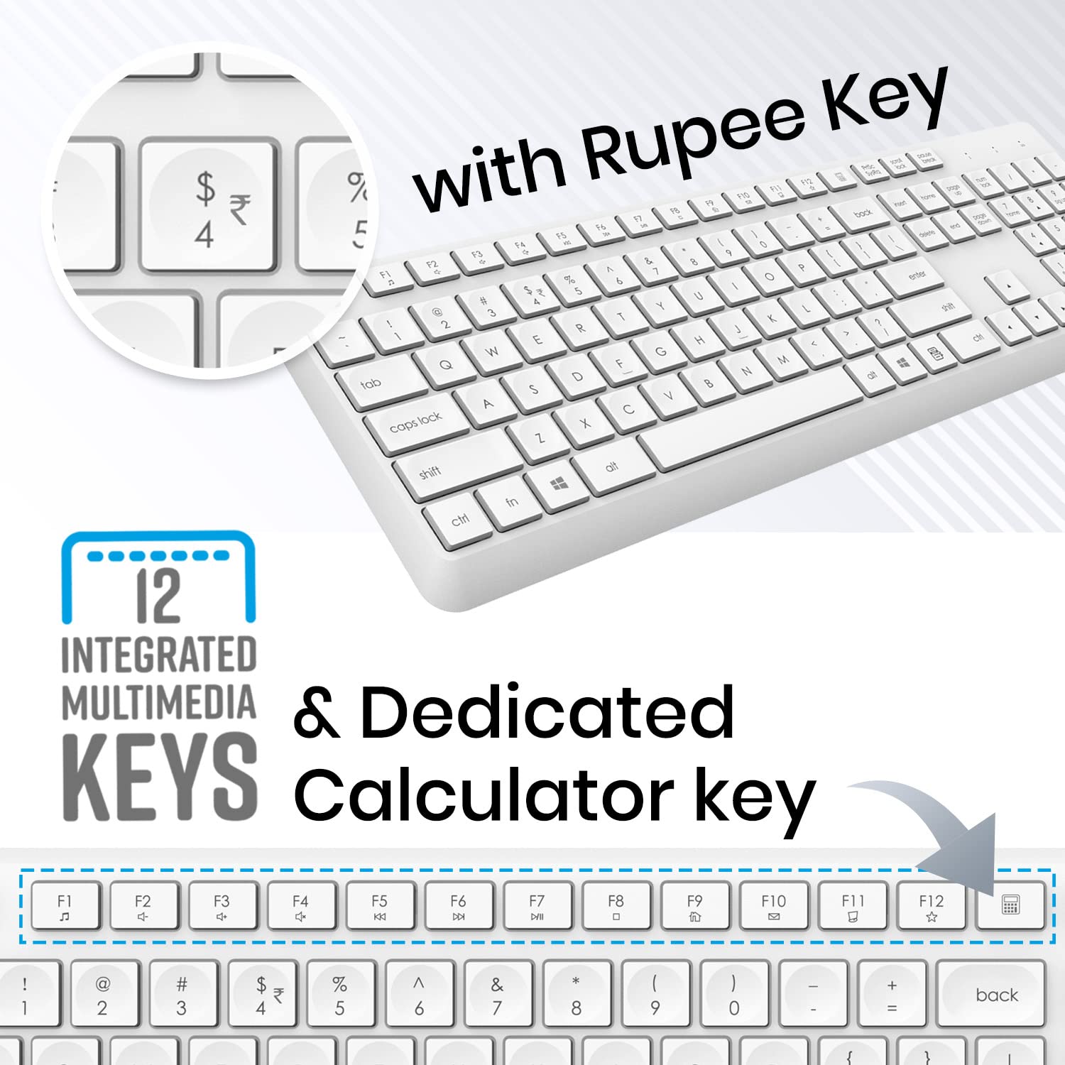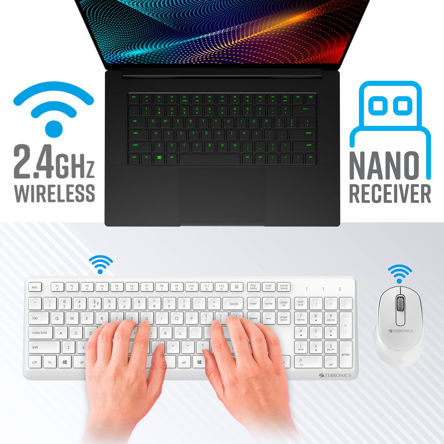 ZEBRONICS Zeb-Companion 500 2.4GHz Wireless Keyboard and Mouse Set, USB Nano Receiver, Chiclet Keys, Ultra Silent, Power On/Off Switch, Rupee Key, for PC/Mac/Laptop (White)