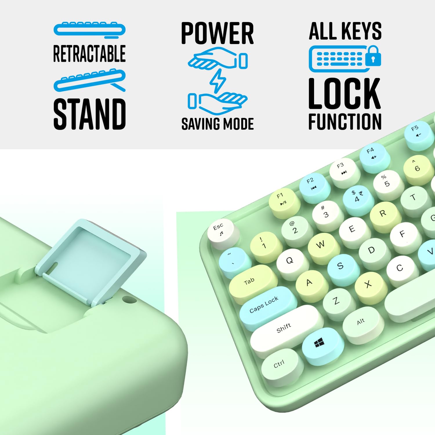 i Gear KeyBee Retro Typewriter Inspired 2.4GHz Wireless Keyboard with Mouse Combo for Desktop/Laptop and Devices with USB Support, Single Nano Receiver, Round Keycaps, Cleaning Brush (Blue)