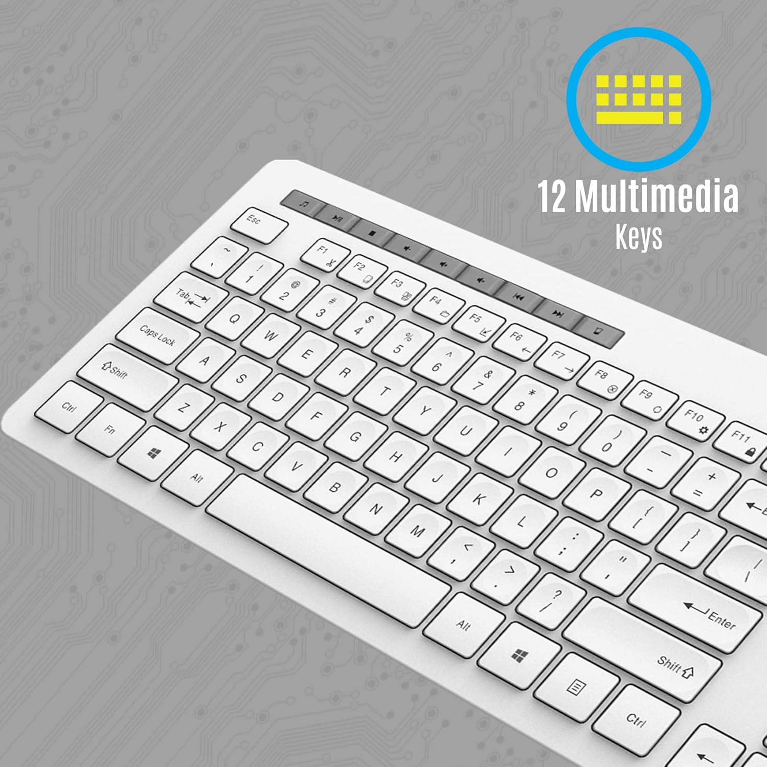 ZEBRONICS Companion 130 2.4GHz Wireless Keyboard & Mouse Combo, 105 Keys, 12 Integrated Multimedia Keys, 4 Button Mouse, Upto 1600 DPI, High Precision, Advanced Optical Sensor (White)